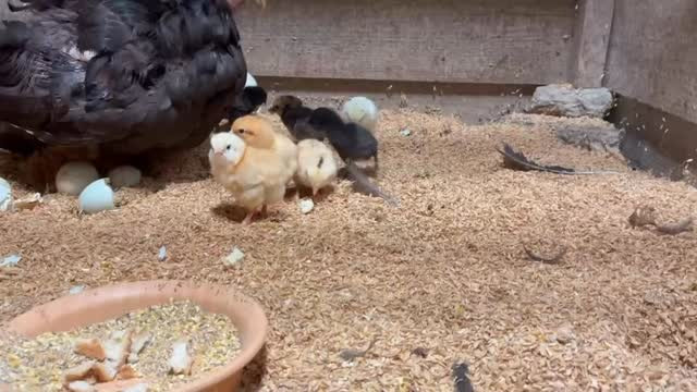 子供のヒヨコ達にご飯これだよと渡してます✨